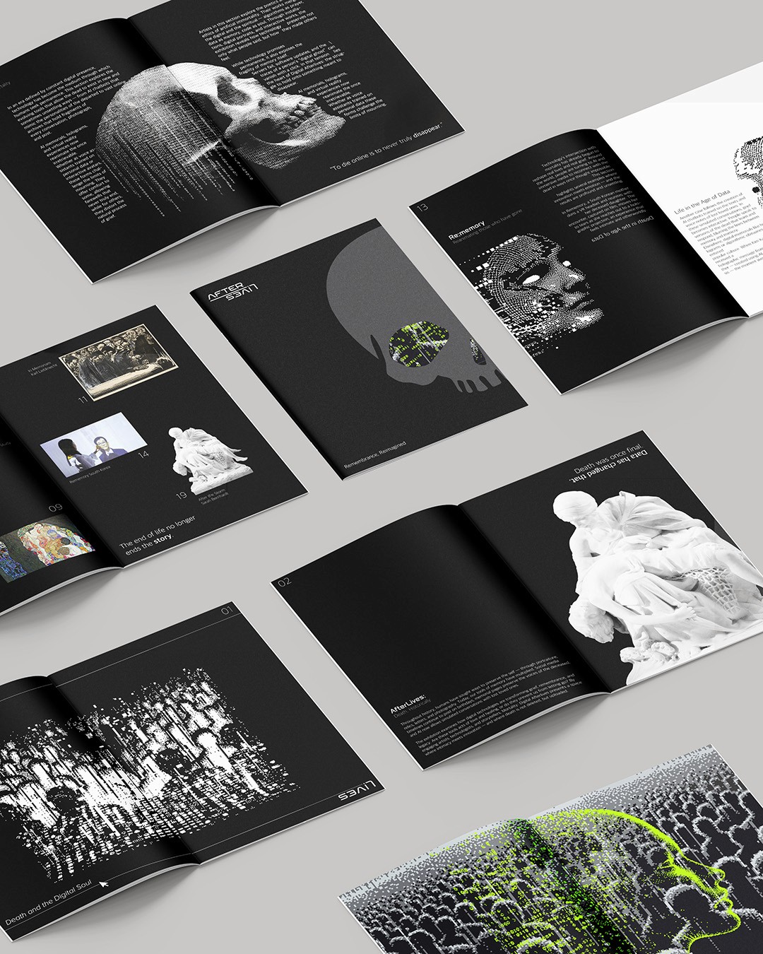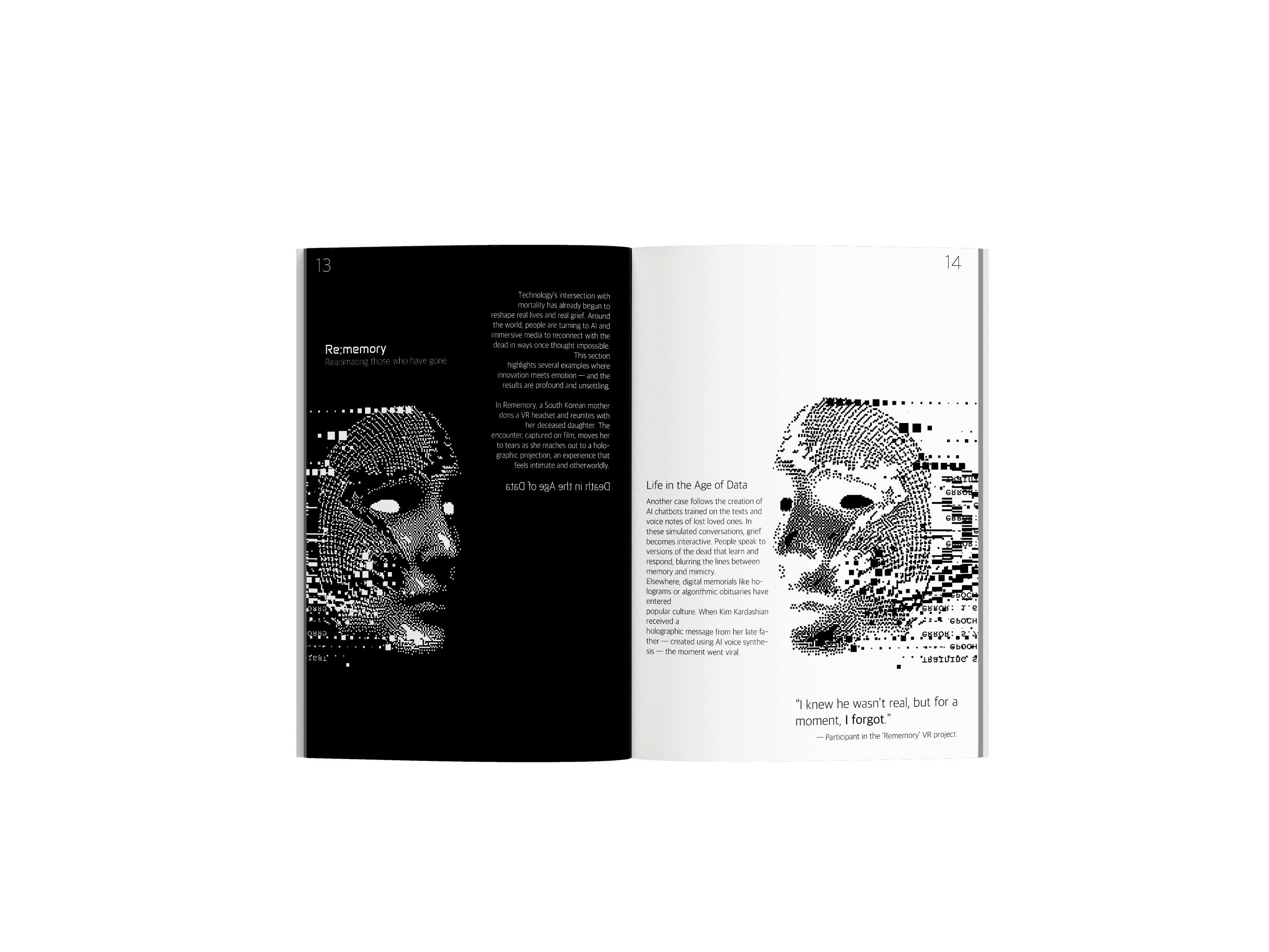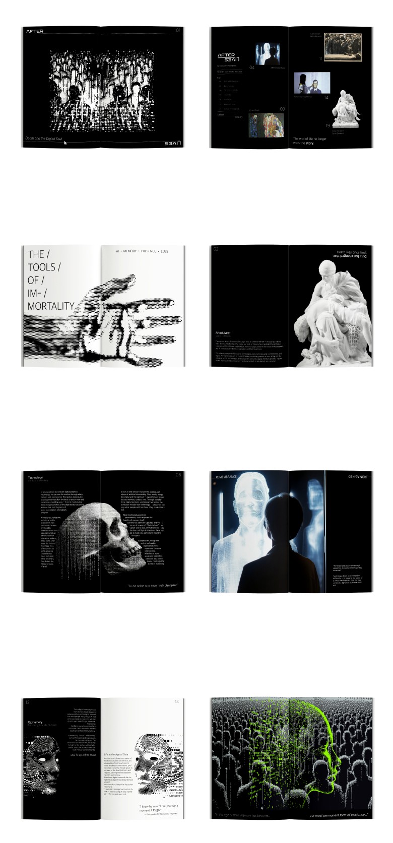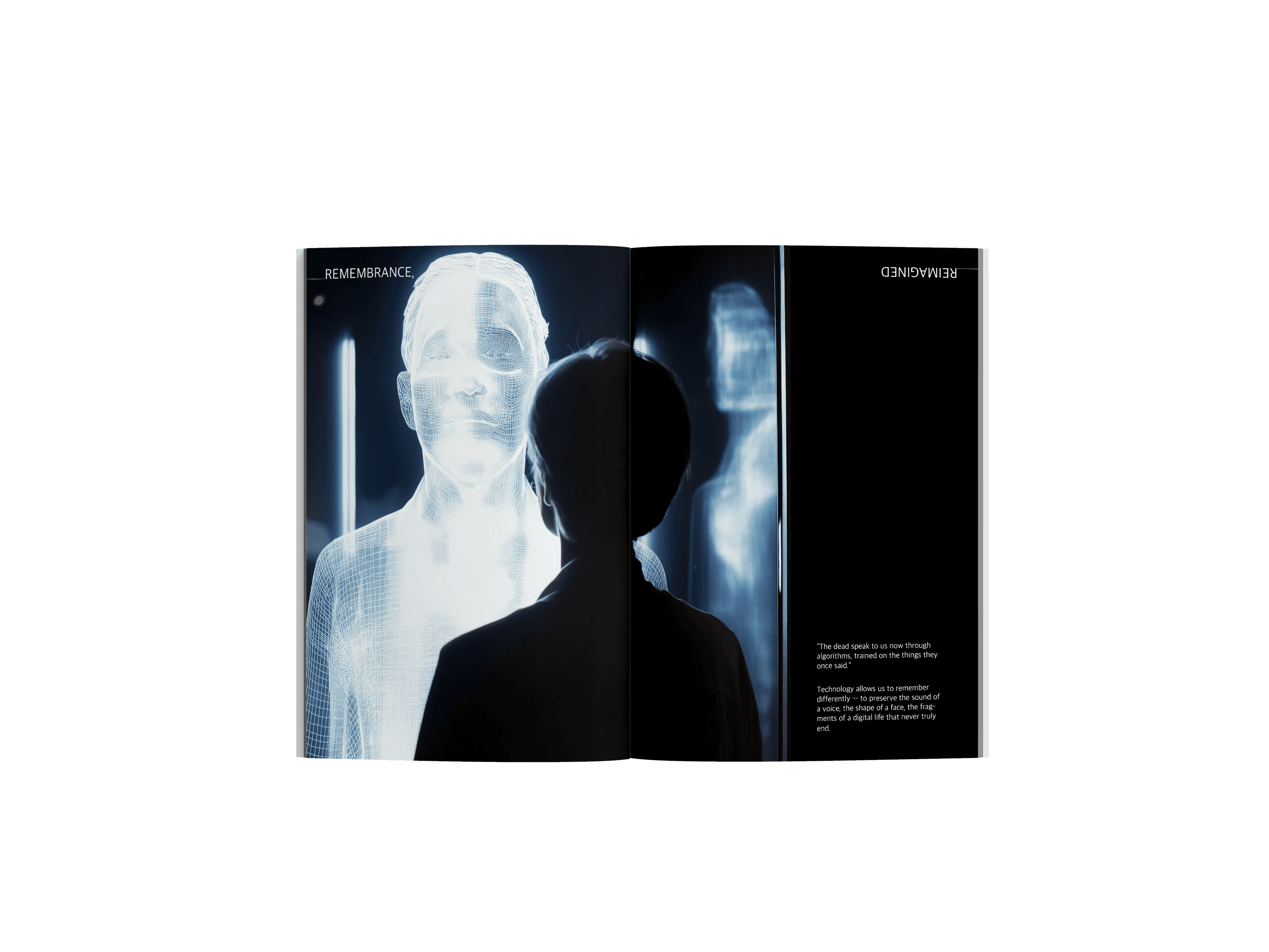 The project began with research into contemporary technological approaches to death and remembrance: AI resurrection technology, digital legacy planning, social media memorialization policies, and the ethical implications of digital immortality. This research revealed a cultural tension, while technology offers new forms of comfort and connection to the deceased, it also raises questions about consent, grief, and the boundaries between remembrance and resurrection.