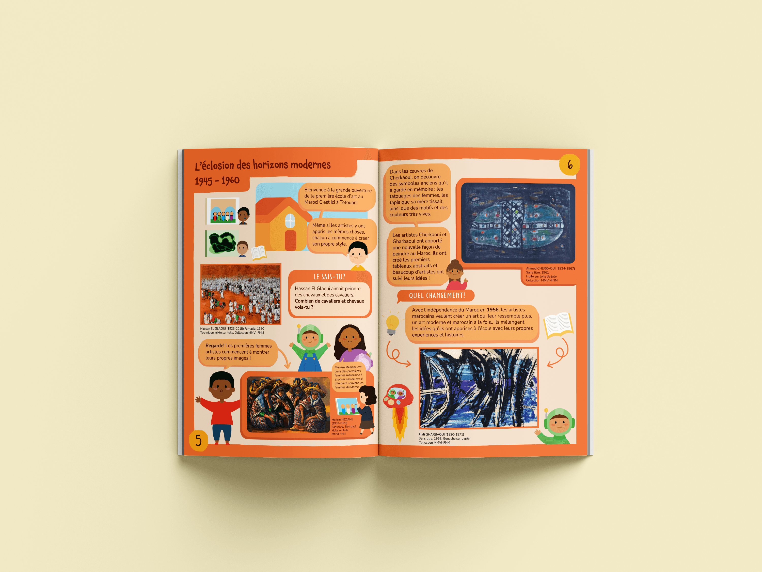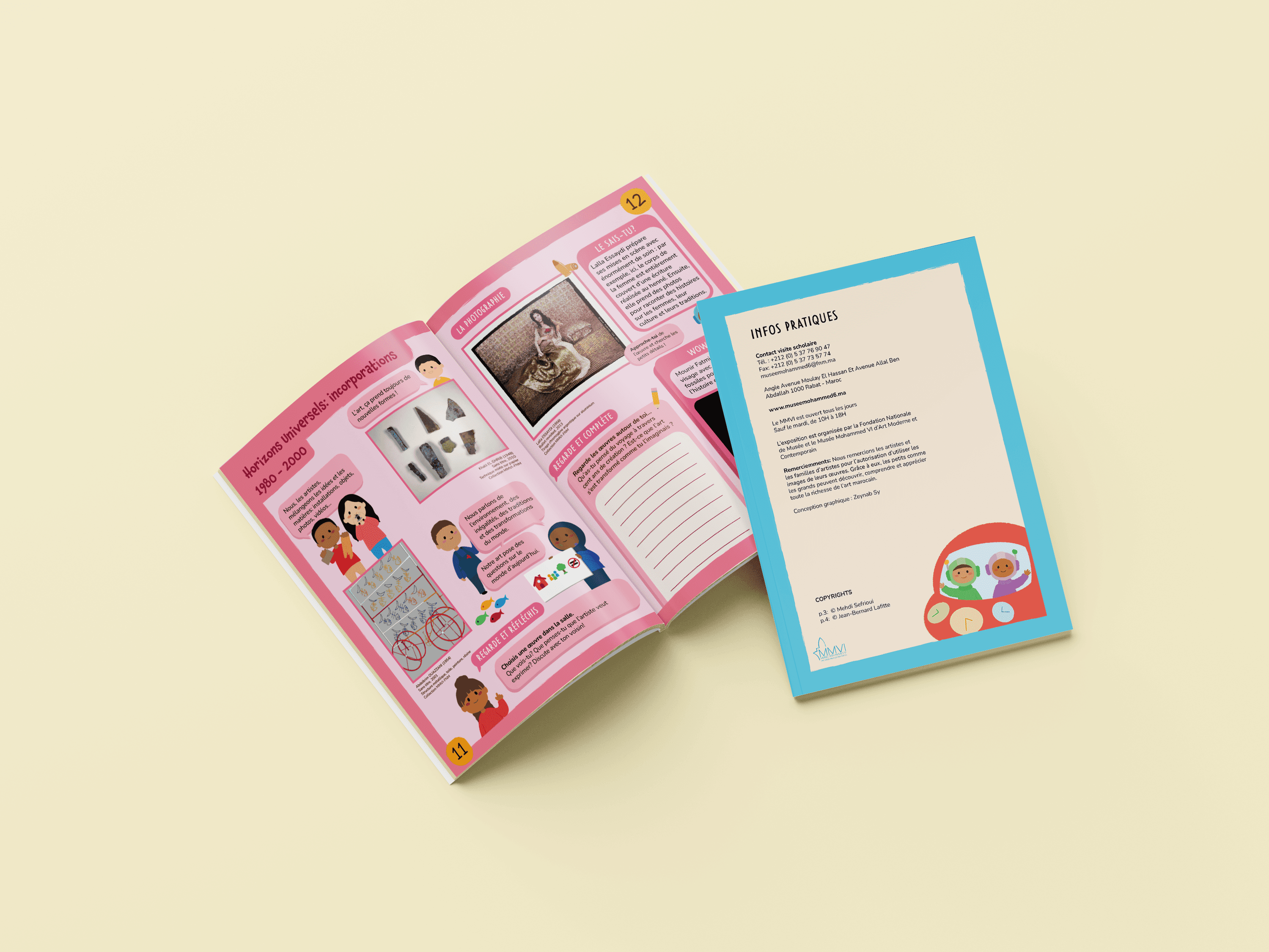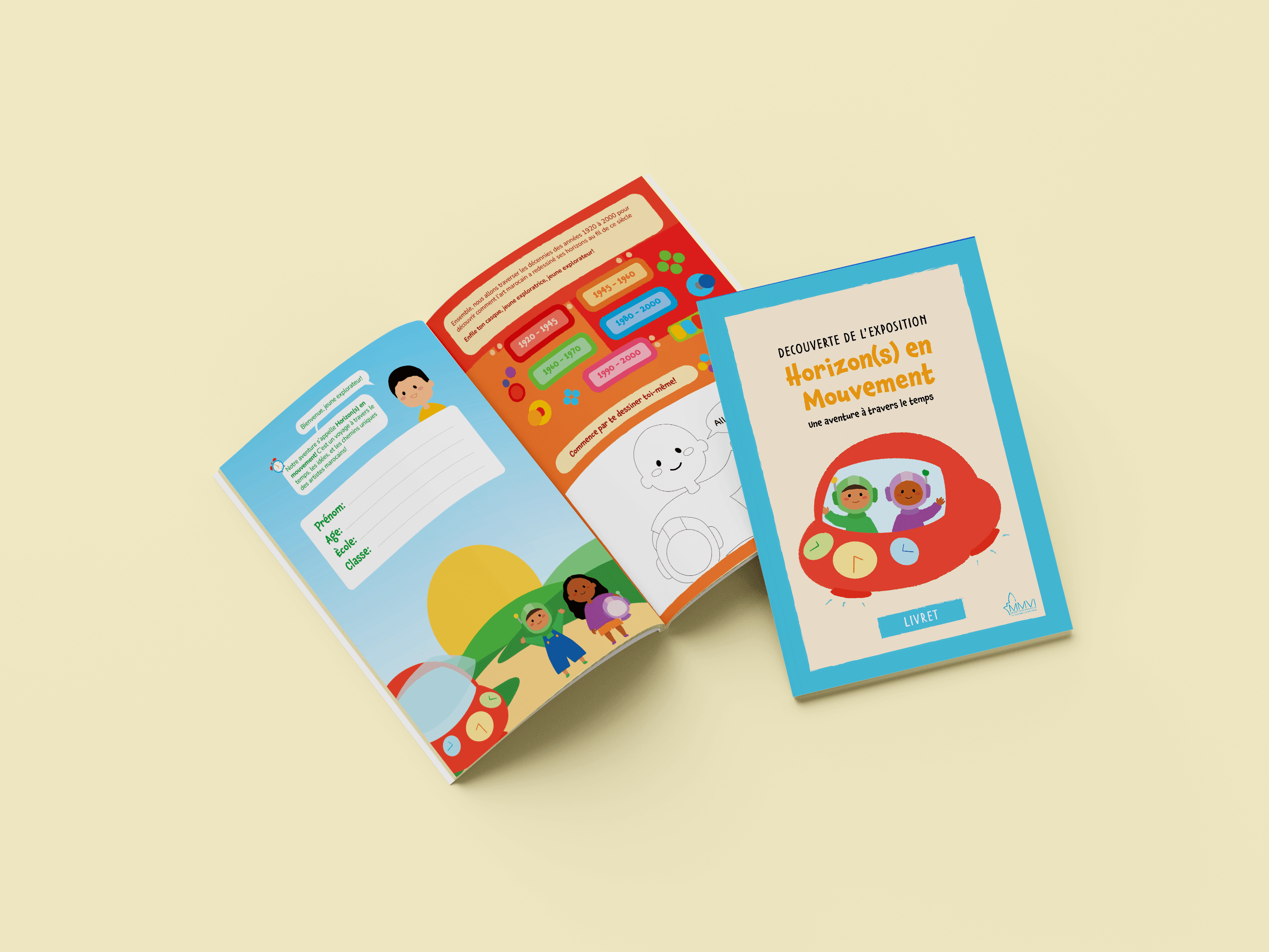 During my internship at the Musée Mohammed VI d'Art Moderne et Contemporain in Rabat, I was tasked with designing an educational pamphlet for children for the exhibition Horizon(s) en Mouvement. The exhibition traced 100 years of Moroccan art history from 1920 to 2020, presenting six thematic periods through distinct visual environments and color schemes.