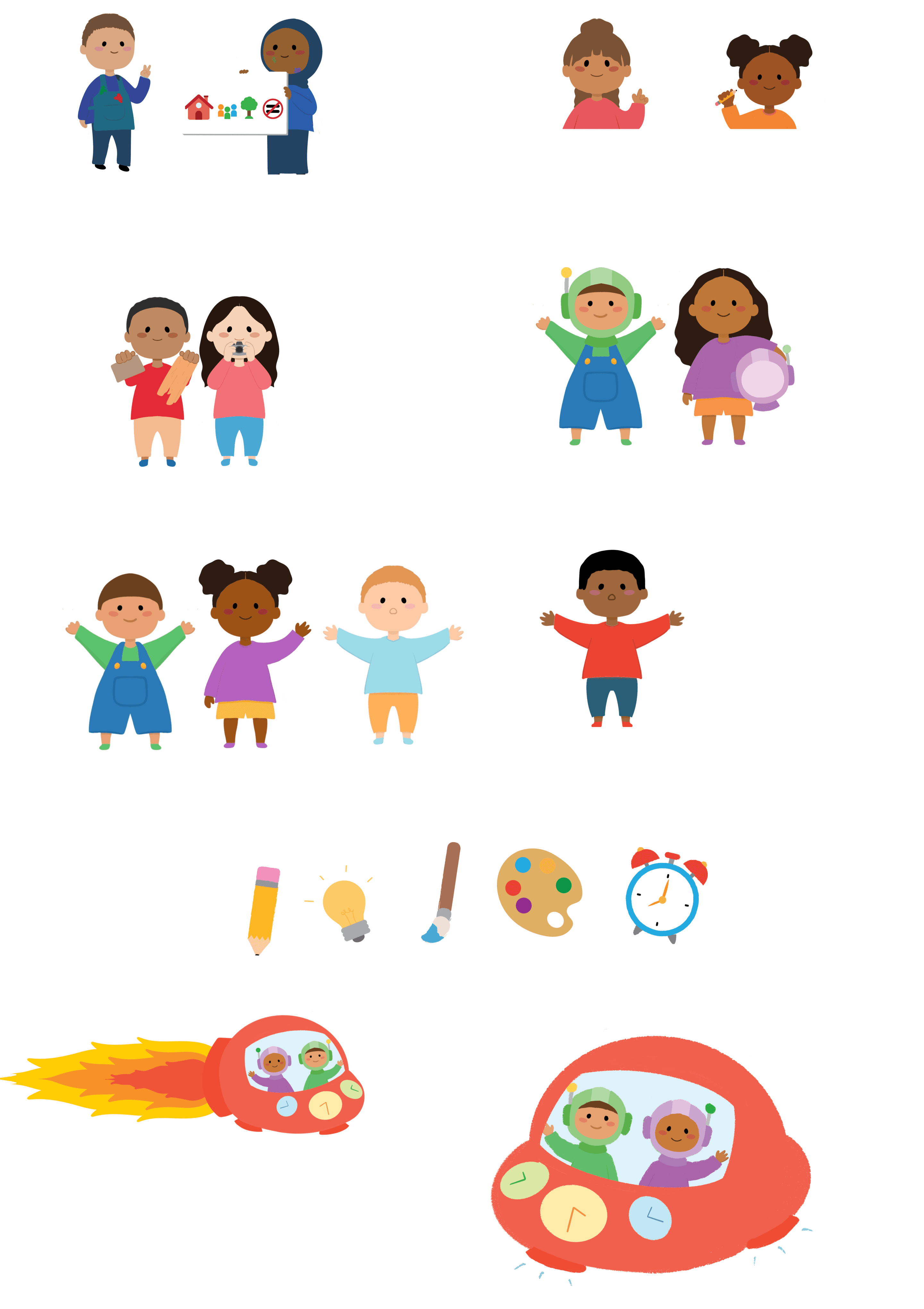 To make the pamphlet more engaging for children, I developed an illustrated character system that could guide young visitors through the exhibition. The characters needed to feel approachable and playful while being sophisticated enough to represent the museum's brand.