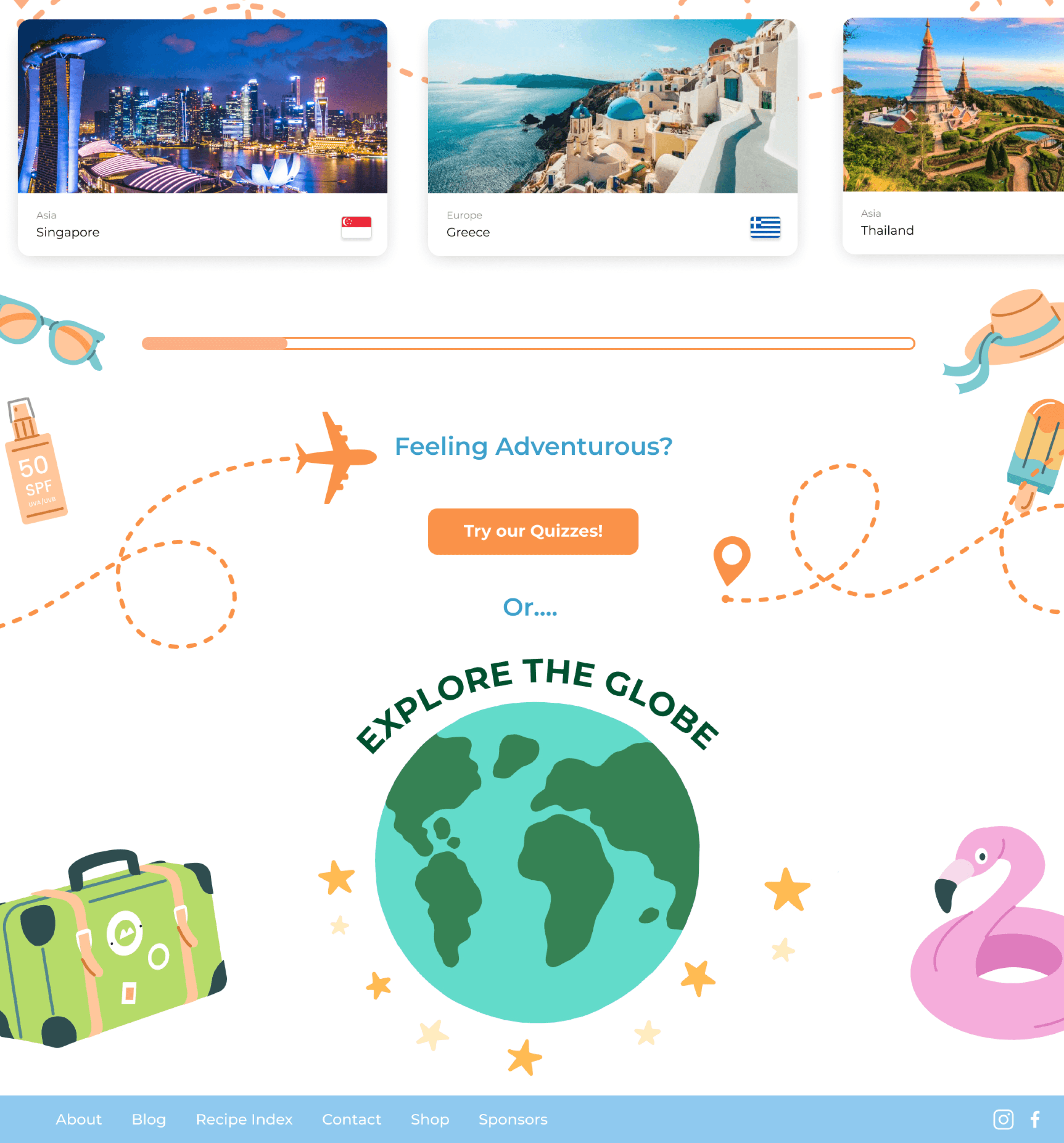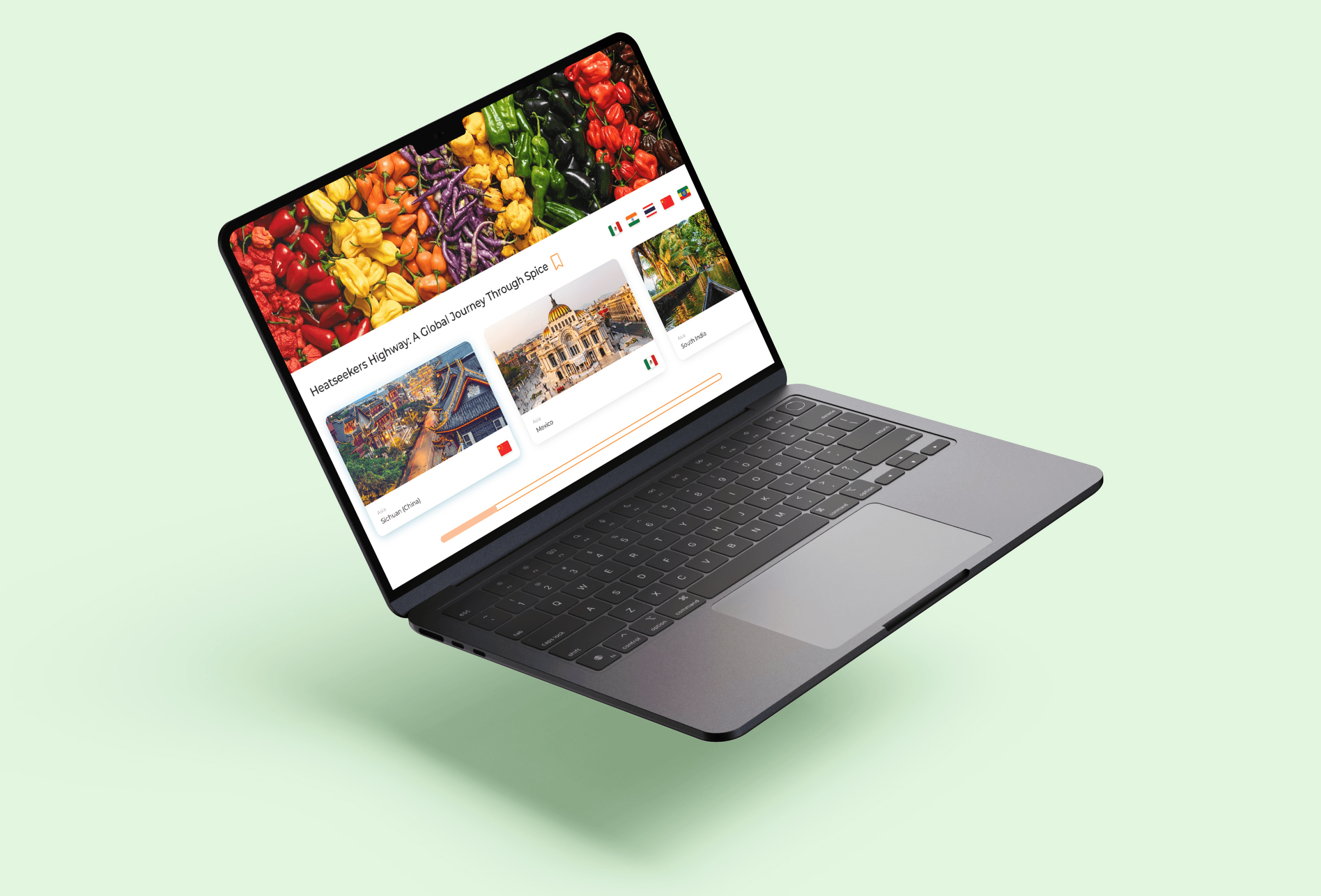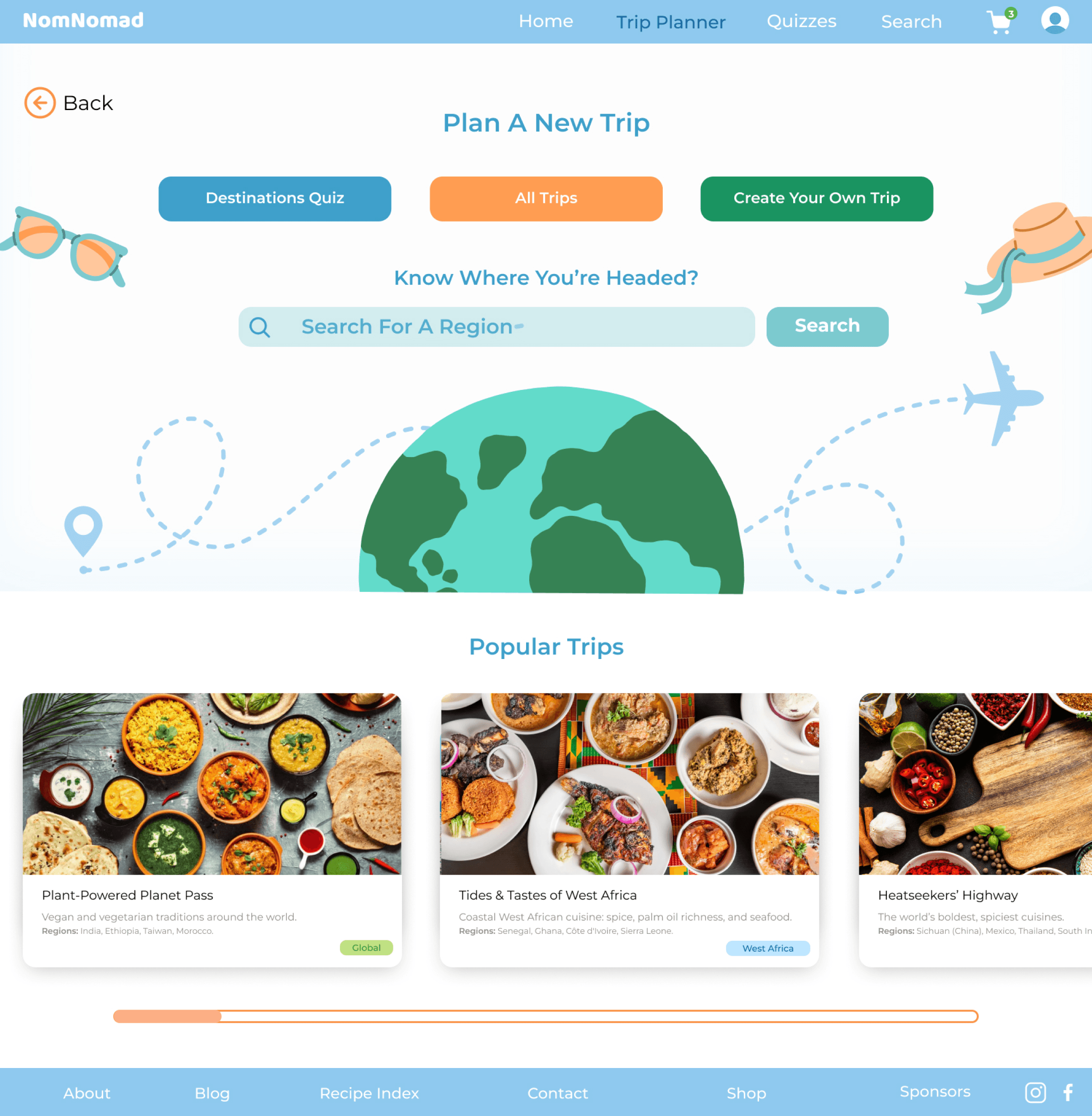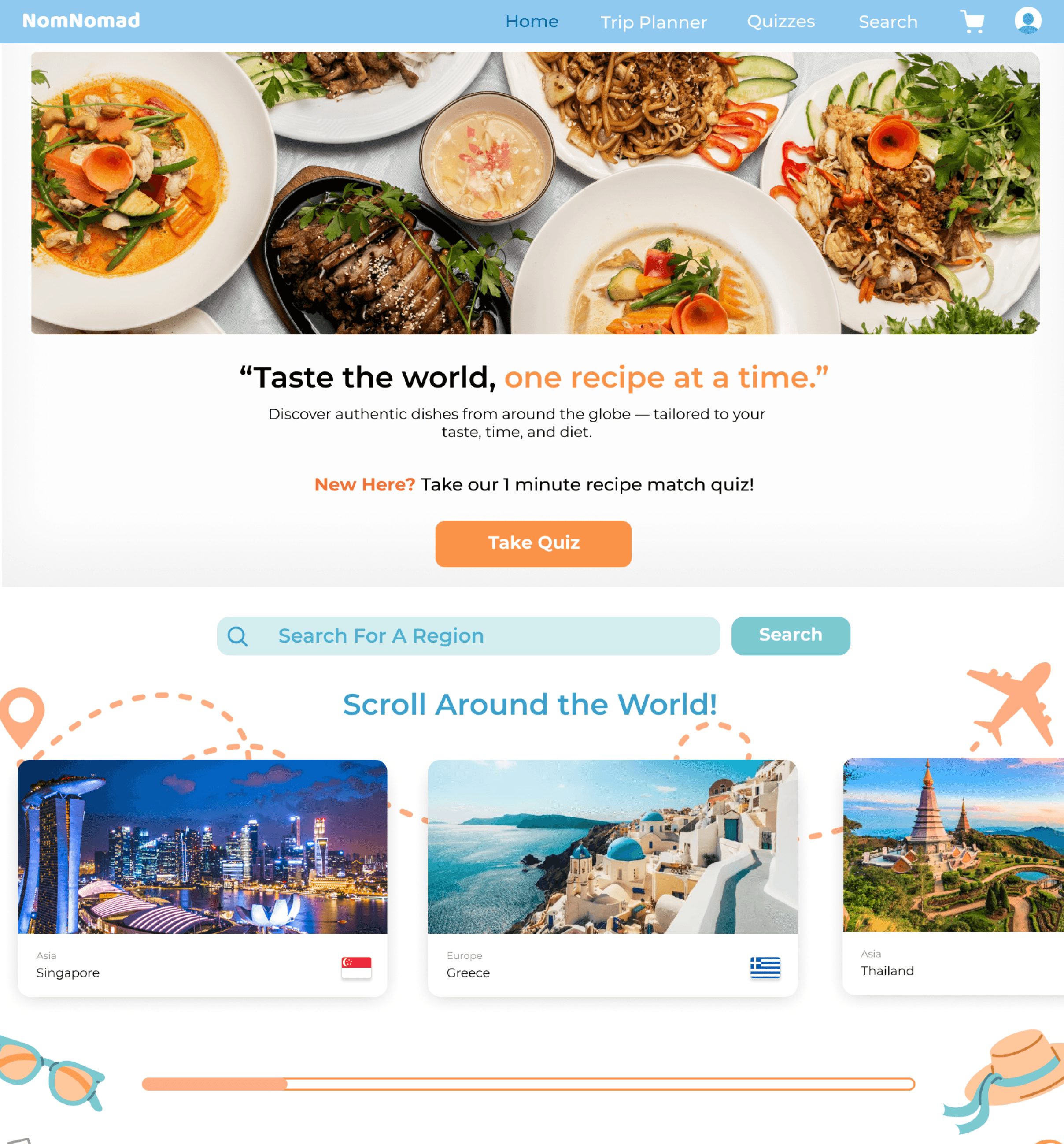 Scroll Around the World carousel showcasing destinations and signature dishes