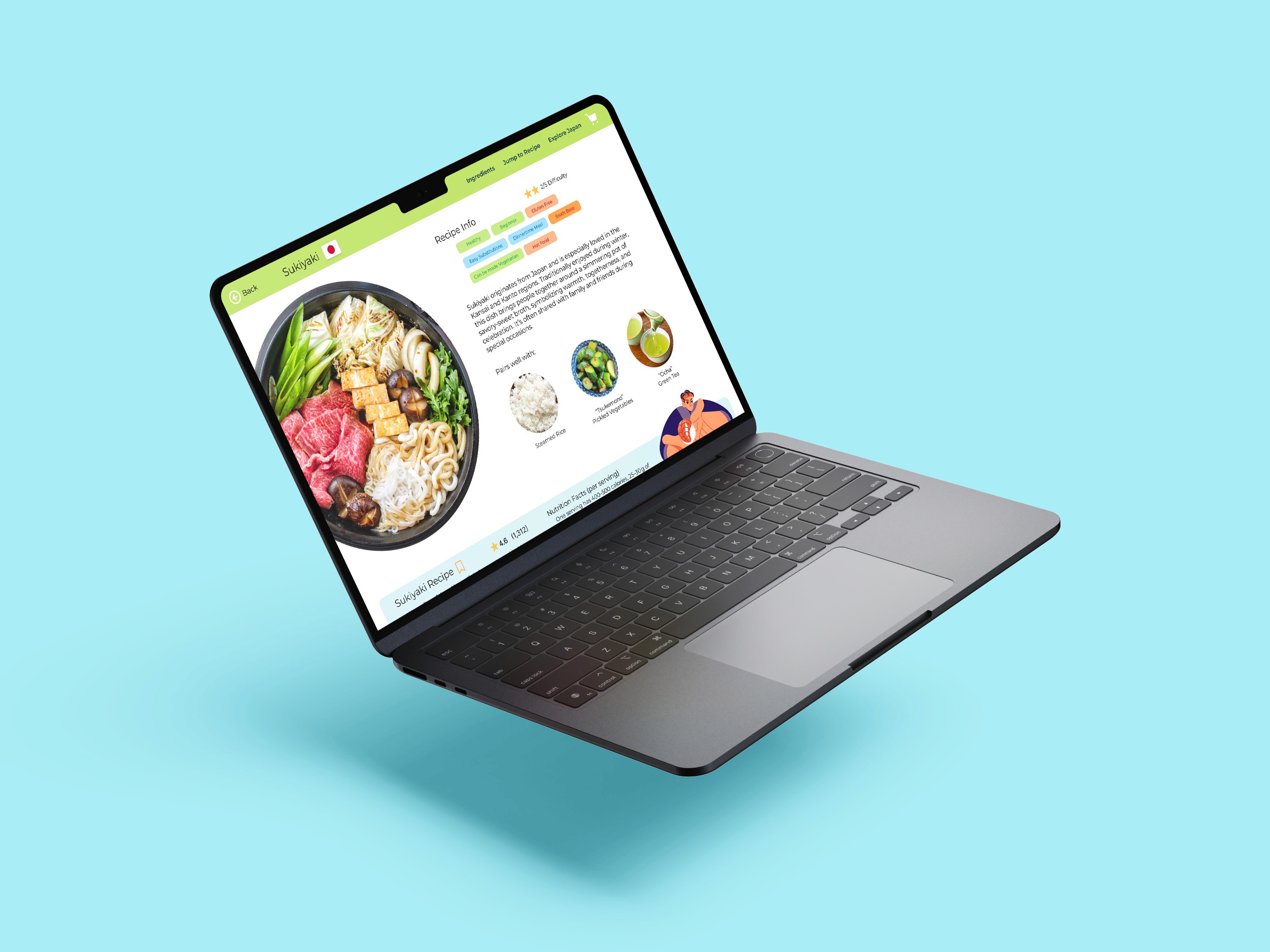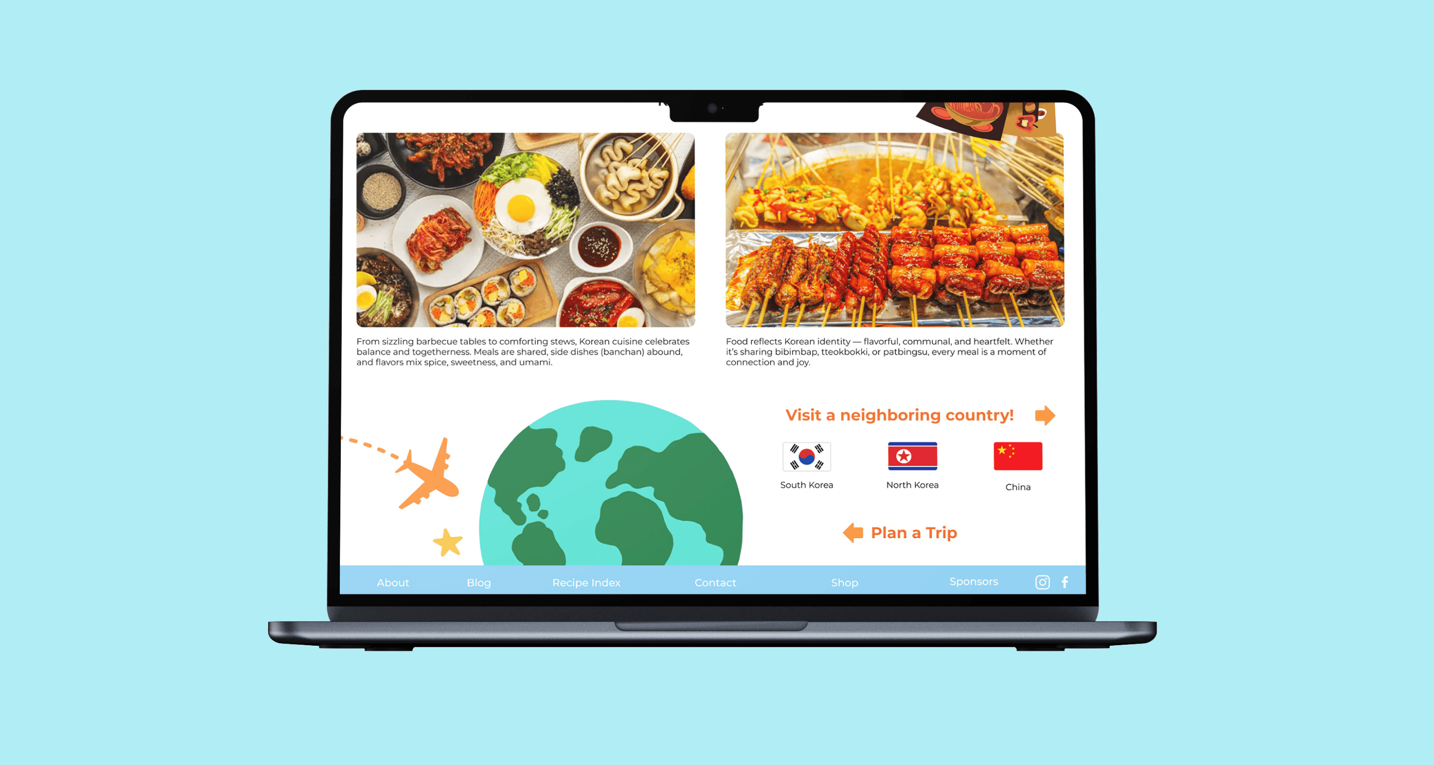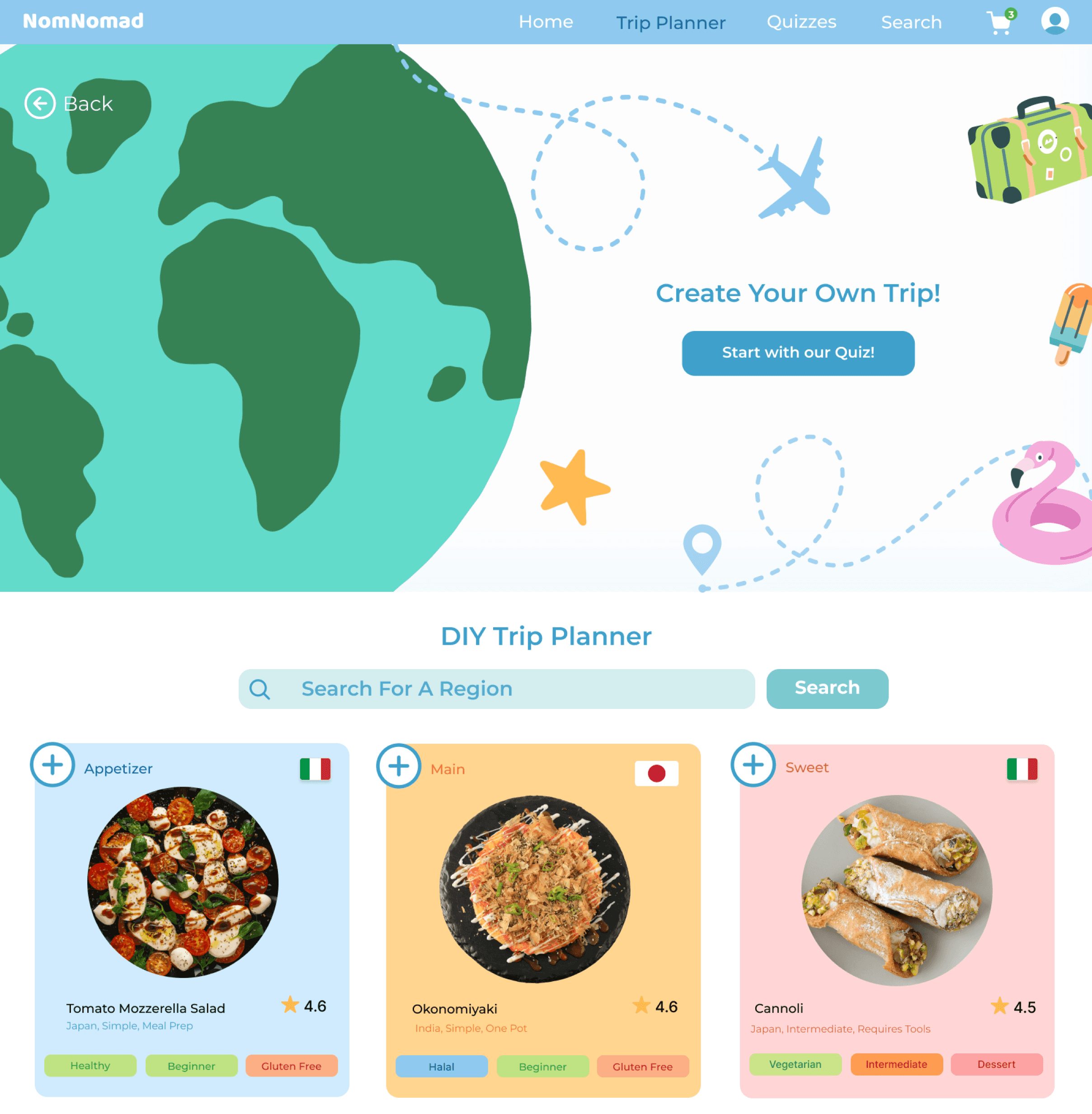 Deep dive into a cuisine or culture. Each country page offers: