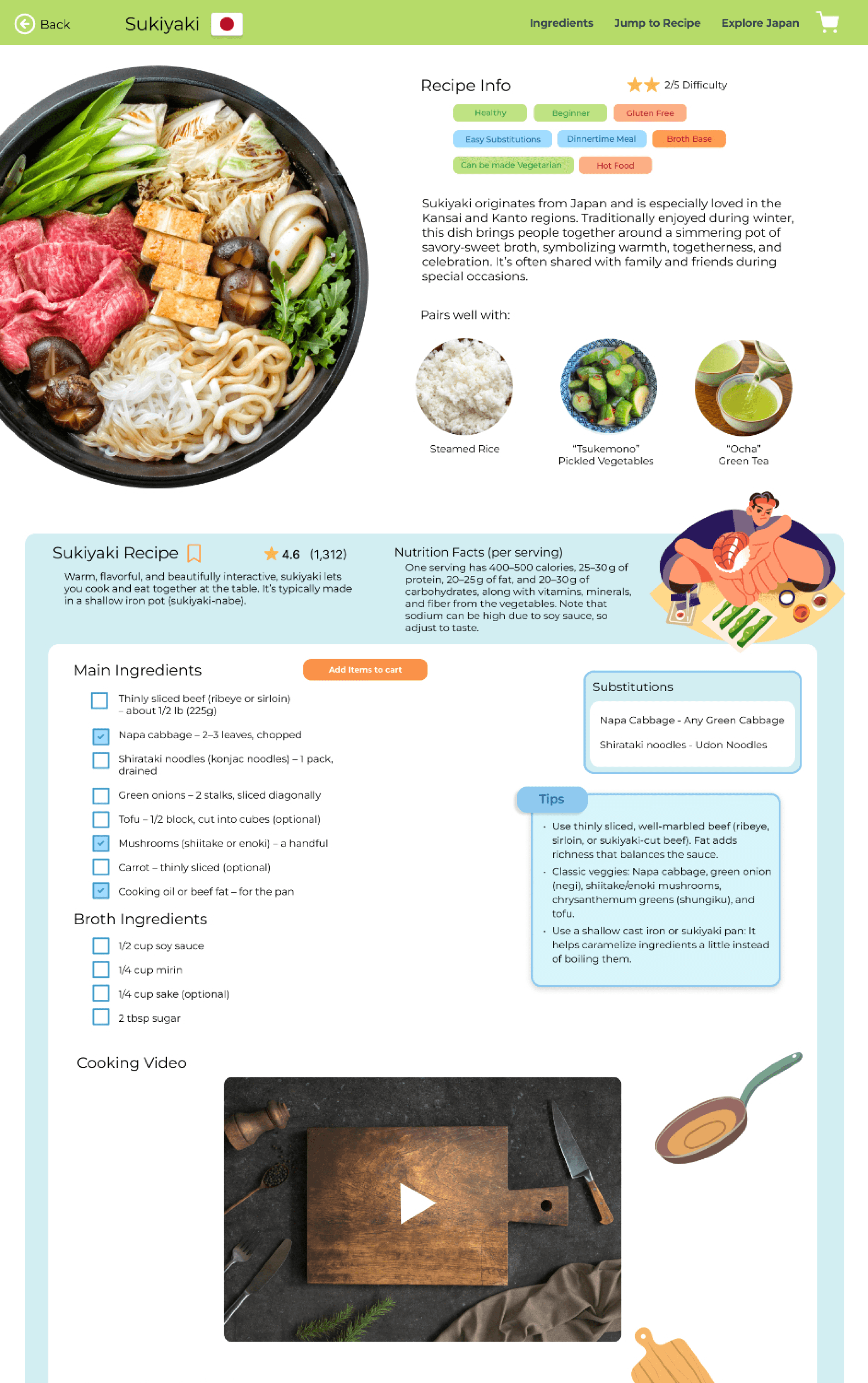 Ingredient spotlights explaining unfamiliar items with photos and substitutes