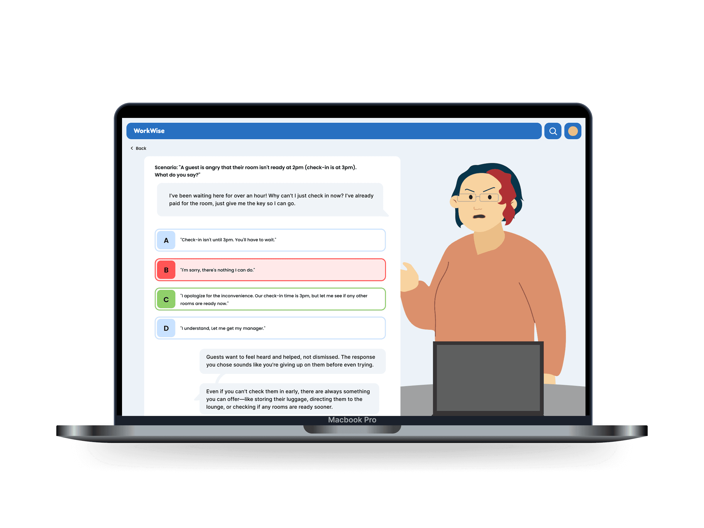 WorkWise bridges the gap between child-friendly learning (engaging but too simple) and corporate training (thorough but overwhelming). It provides visual step-by-step guides with illustrations and screenshots, interactive practice simulations, downloadable reference materials workers can revisit anytime, cultural context explaining workplace norms and the “why” behind tasks, multilingual support, and an AI chatbot assistant for instant help.
