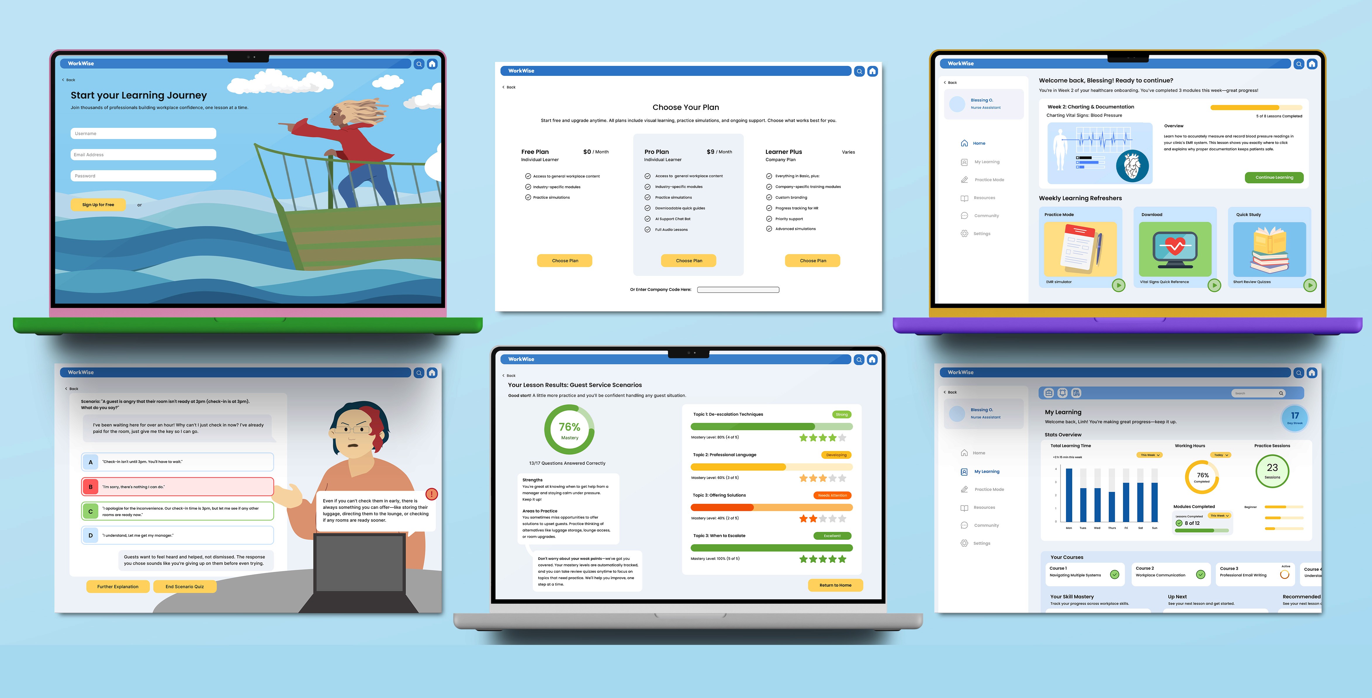 Adult learning platforms are text-heavy and difficult to navigate. For immigrants and first-time professionals, this is compounded by language barriers, unfamiliar cultural norms, and anxiety about using systems not designed with them in mind.